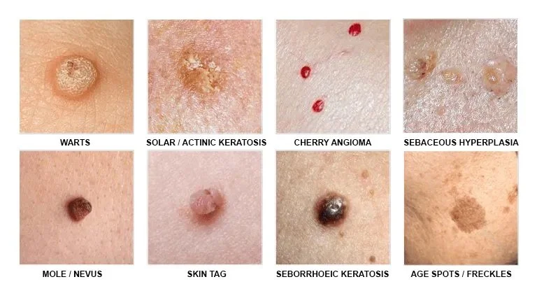 Skin Tags – Small, soft, benign growths that commonly appear on the neck, underarms, and other friction areas.